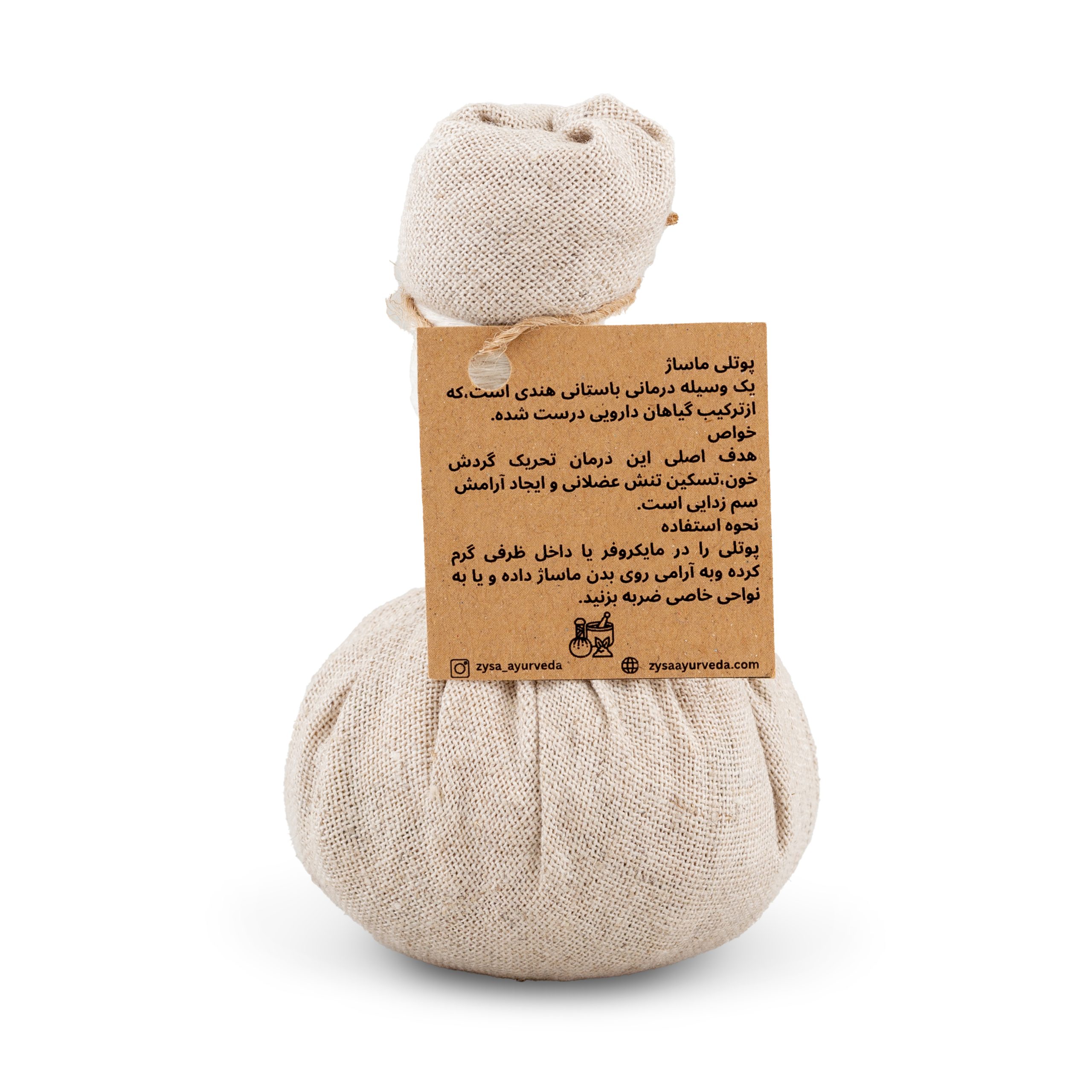 نحوه استفاده: پوتلی را در مایکروفر و یا داخل ظرفی گرم کرده و به آرامی روی بدن ماساژ داده و یا به نواحی خاص ضربه بزنید.